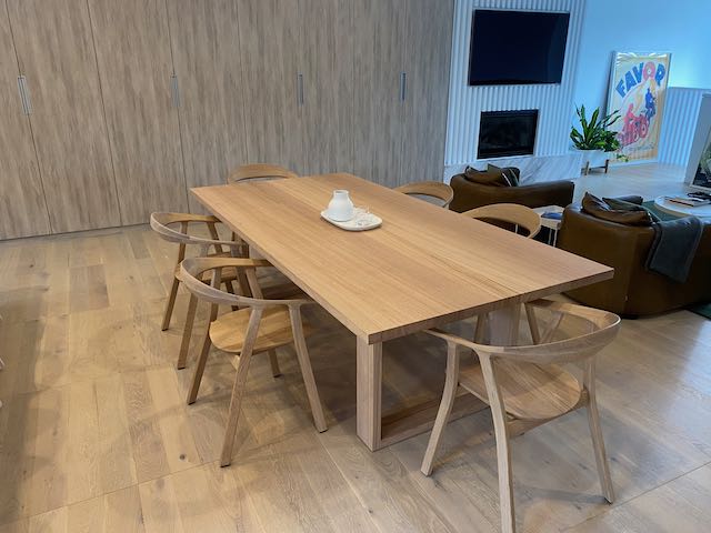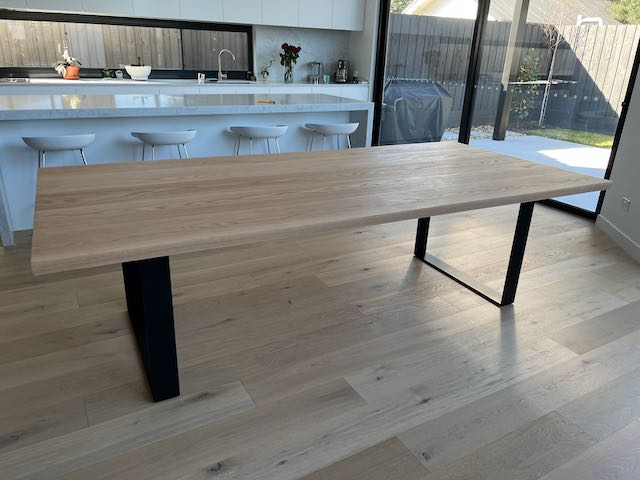The image shown in Vic Ash hardwood 3m by 1.1m with a hardwax oil finish. Table top